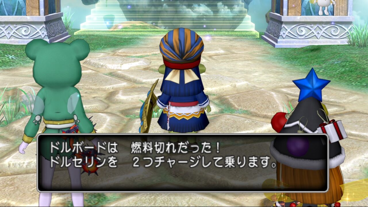 燃料が切れた状態でドルボードに乗ると自動的にドルセリンが消費さエネルギーが充電されます。これも6.2からの仕様変更で追加された機能のようです。正直ドルセリンというアイテムは店売りだし1000万Gで永久に動くエネルギー装置があってもいい気がします。1000万Gでアイテム欄の枠が1個空くなら買う人結構いそうな気がする。なんなら課金アイテム(PG)でも。