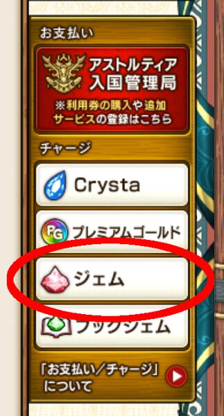 1. 冒険者の広場(HP)のメニュー右側にあるジェムを選択
