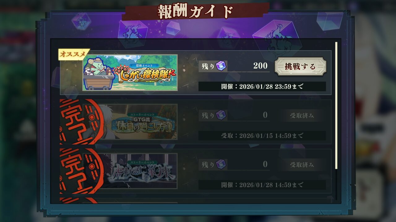 YouTubeのコメントで「報酬ガイドの確認方法が分からない」とあったのでブログに記載しておきます。報酬ガイドは2025年12月のアップデートから使用できるようになりました。
